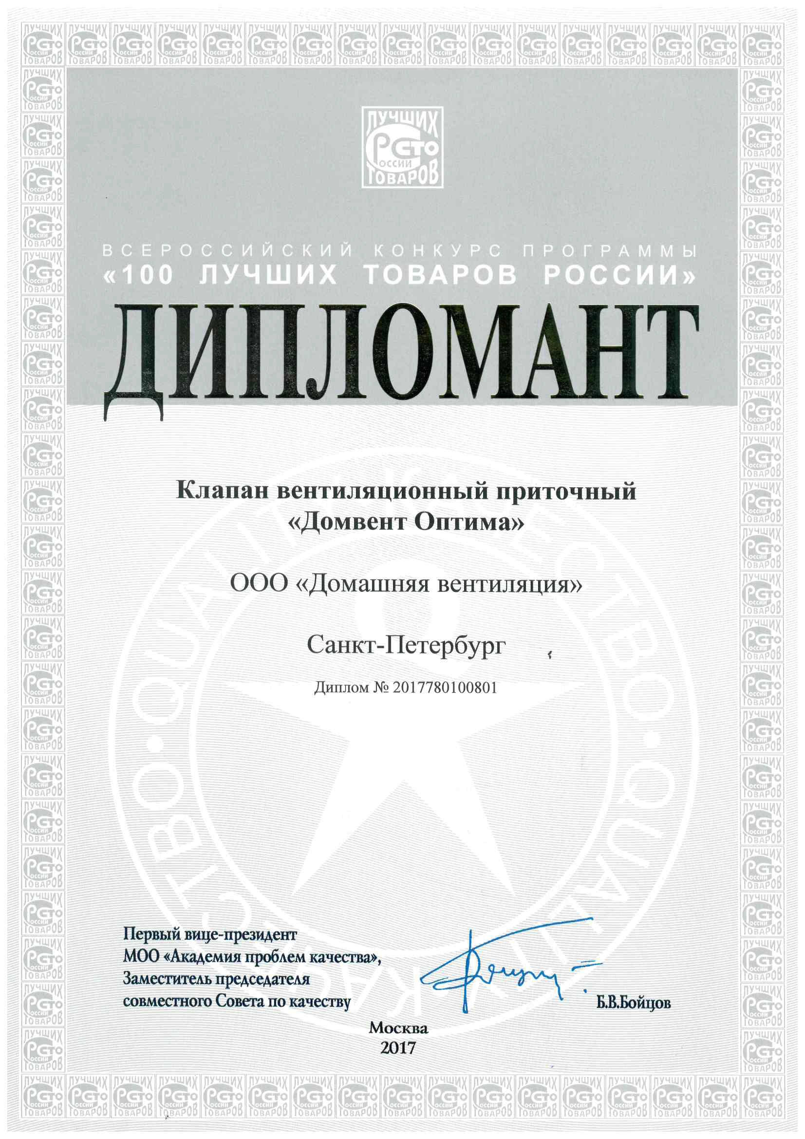 12) Диплом лауреата Всероссийского конкурса программы «100 лучших товаров России».