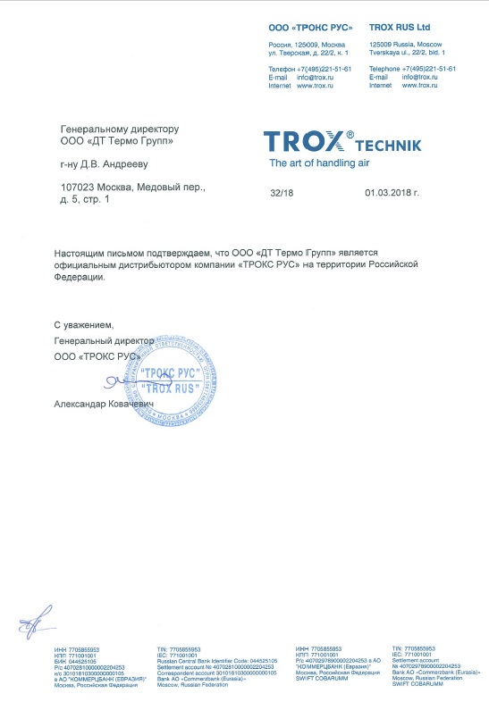 Сертификат официального дистрибьютора компании ООО «Трокс Рус»