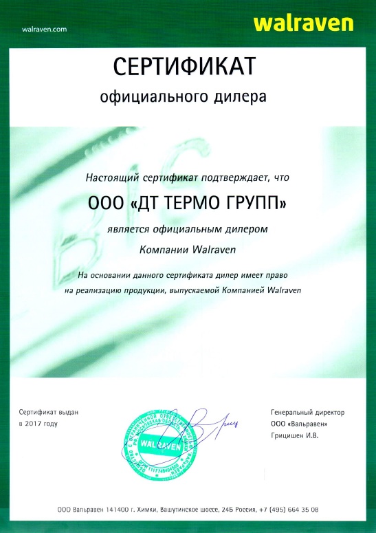 Сертификат официального дилера компании Walraven