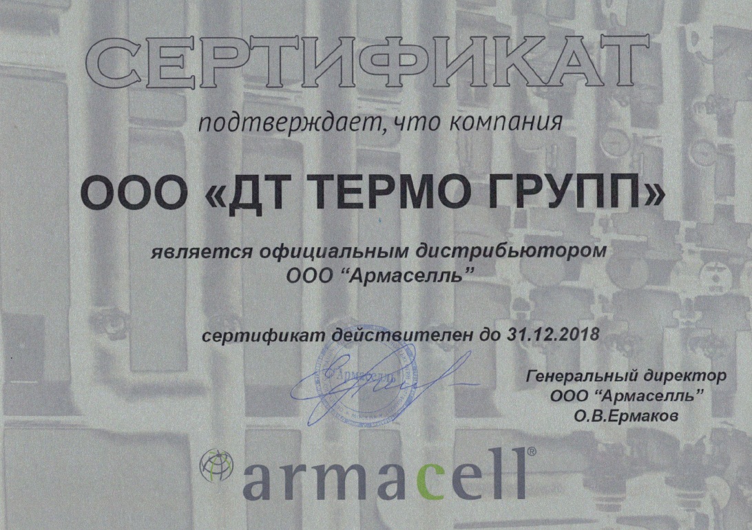 Сертификат официального дистрибьютора ООО «Армаселль»