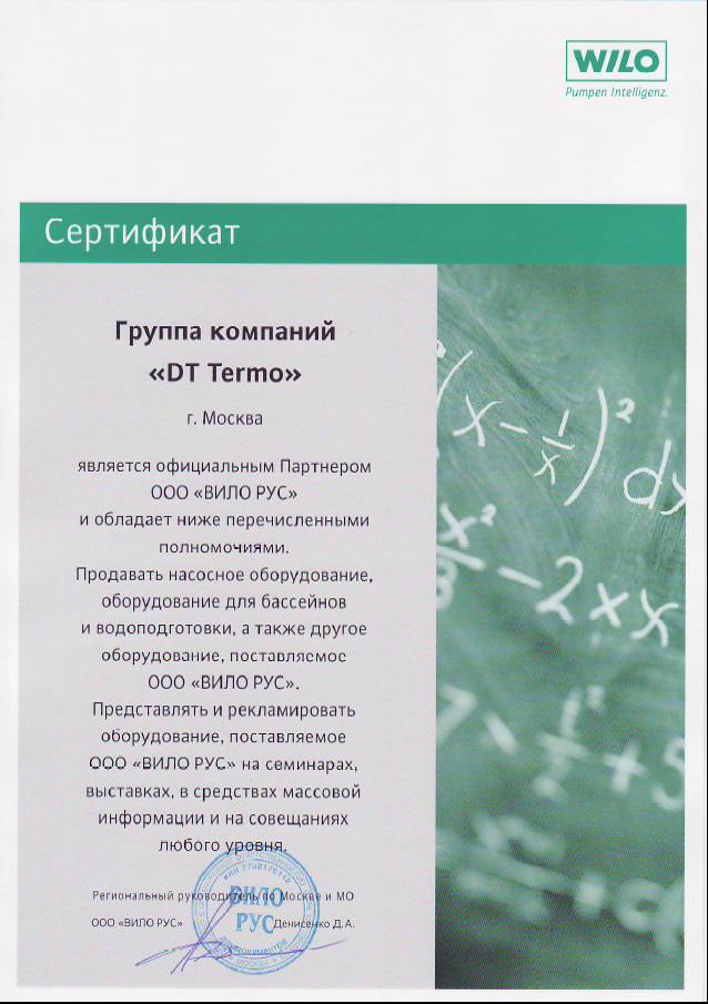 Сертификат официального партнера Wilo