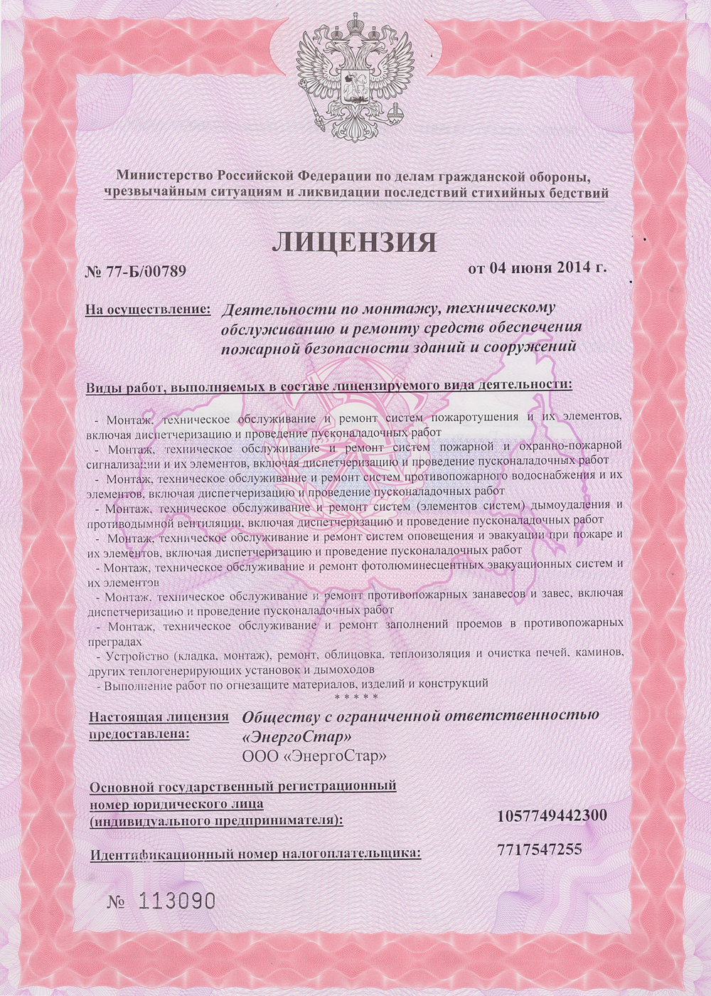 Лицензия на осуществление деятельности по монтажу, техобслуживанию и ремонту средств обеспечения пожарной безопасности