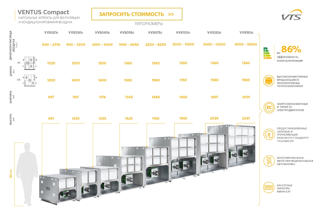 VENTUS Compact - новая линейка агрегатов для вентиляции и кондиционирования воздуха компании VTSКомпания VTS представляет новый типоряд компактных вентиляционно-кондиционирующих агрегатов с названием VENTUS Compact.