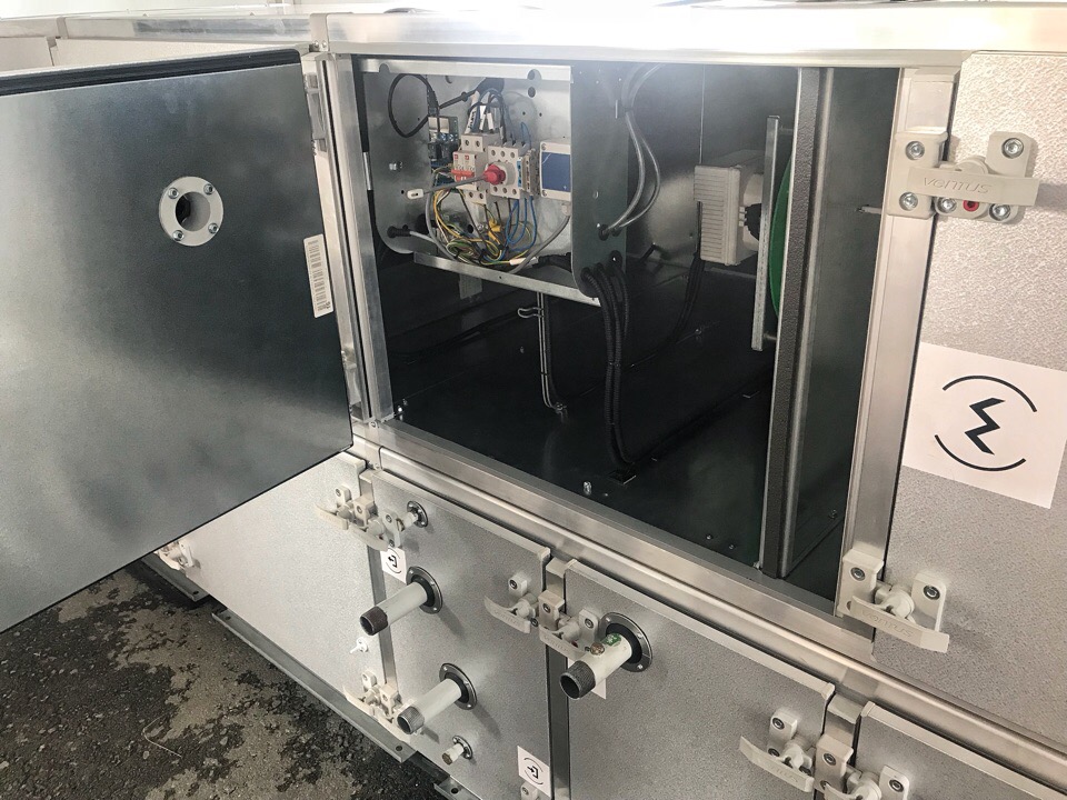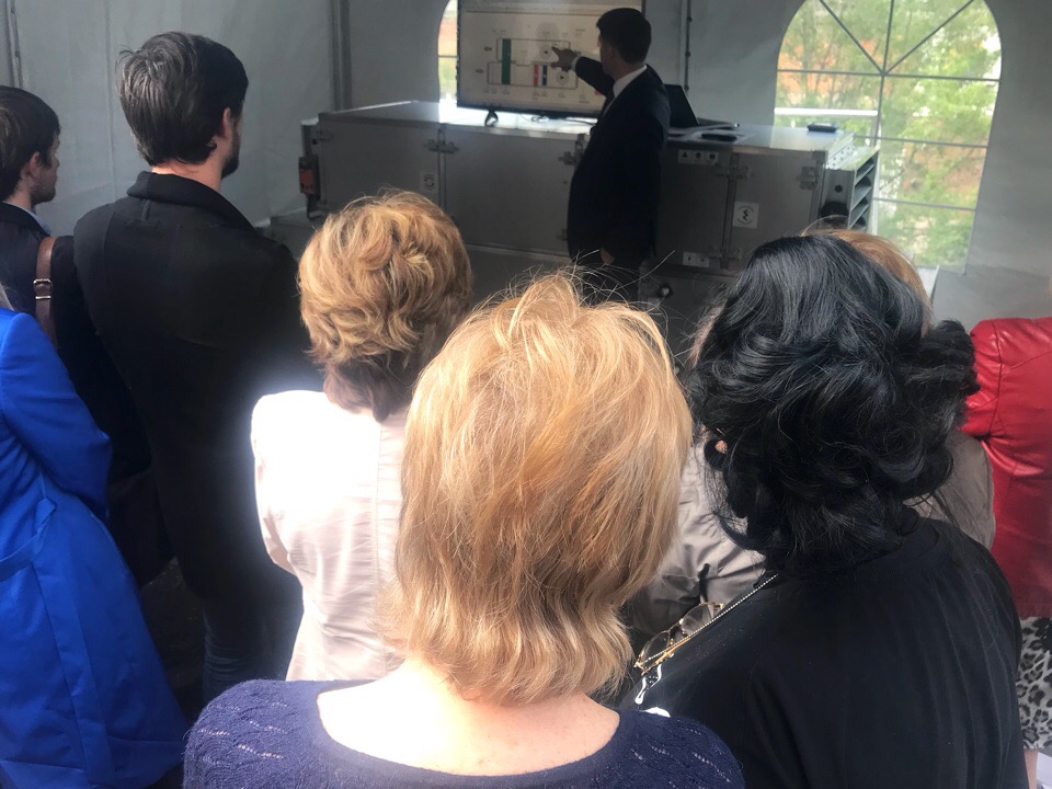 Во время семинара был продемонстрирован агрегат VVS040 c вращающимся регенератором рекуператором, который обеспечивает термическую эффективность процесса утилизации тепловой энергии не менее 80% в условиях сбалансированных воздушных потоков. Высокие показатели эффективности позволяют значительно снизить требуемую тепловую мощность нагревателя, установленного после утилизатора тепловой энергии. Вращение насадки регенератора осуществляется при помощи EC-двигателя класса эффективности IE4.