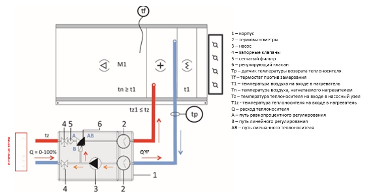 Надежная и уверенная работа системы вентиляции и кондиционирования воздуха зависит не только от качества самой вентиляционной установки. Функционирование системы обработки и подачи воздуха обеспечивается работой целого ряда устройств и систем. Так важным элементом при эксплуатации системы ВКВ является блок регулирования тепловой мощностью нагревателя (часто именуемая «обвязкой»), предназначенный для изменения количества теплоты, сообщаемой потоку воздуха, забранного из атмосферы, в зависимости от изменяющейся температуры наружного воздуха.