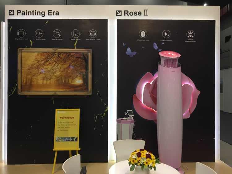 Одна из новинок, Rose SeriesⅡ, создала на стенде романтическую атмосферу. Ее внешний вид и встроенные скрытые двойные воздуховоды создают ощущение красоты, а также сбалансированное температурное поле. Кондиционеры серии Crown оснащены двухступенчатым компрессором. Превосходные характеристики этой серии при экстремальной температуре от -30 ℃ до +54 ℃ получили восхищение многих посетителей выставки. Кроме того, серия Gree Rose управляется через Wi-Fi с помощью специального приложения Gree +, установленного на смартфон.