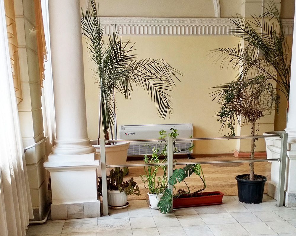 В здании расположены различные департаменты, комитеты и управления, которые ежедневно решают злободневные вопросы города и проблемы граждан. Поэтому для объекта такого значения очень важна комфортная обстановка и правильно выбранные системы холодоснабжения. В Мэрии приняли решение установить мультизональные системы GREE GMV5. Это 23 наружных блока и 284 внутренних блока разных типов. Общая мощность установленного оборудования составляет 1,136 МВт. Вентиляторы внутренних блоков системы GMV5 имеют DC-инверторные электродвигатели для осуществления плавного регулирования режима работы. Система хорошо выдерживает перепад напряжения от 320 до 460 Вт. GMV5 может эксплуатироваться даже в самое жаркое время - температурный диапазон достигает +52°С, что очень важно для юга России. Еще одним преимуществом мульти-VRF систем является простая структура фреоновой трассы длиной в 1000 м, что уменьшает стоимость установки и упрощает процесс монтажа. Это важно, учитывая историческую ценность объекта.