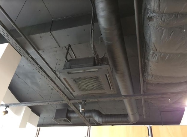 Это кондиционеры с универсальным наружным блоком, к которому подключены внутренние блоки кассетного и канального типа. Общая производительность всего установленного климатического оборудования составляет 400 кВт.