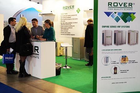 Компания ROVER представила посетителям выставки широкий ассортимент климатического оборудования, а именно: мультизональные системы, сплит-системы, тепловые насосы, фанкойлы и компрессорно-конденсаторные блоки.