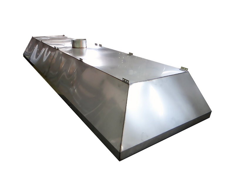 И один огромный островной вытяжной зонт с габаритными размерами в нижнем сечении 1500х5000 мм и высотой Н = 600 мм. Для удобства транспортировки и монтажа этот зонт пришлось изготавливать из двух частей, которые соединяются между собой при помощи болтового соединения. По боковому периметру каждого зонта приварен уголок из нерж. стали AISI 304 32,0х32,0х3,0мм, в котором просверлены крепежные отверстия. Что бы обеспечить высокое качество данных изделий и предотвратить возможную коррозию после сварки, все швы были обработаны специальной травильной пастой, которая восстанавливает структуру металла.
