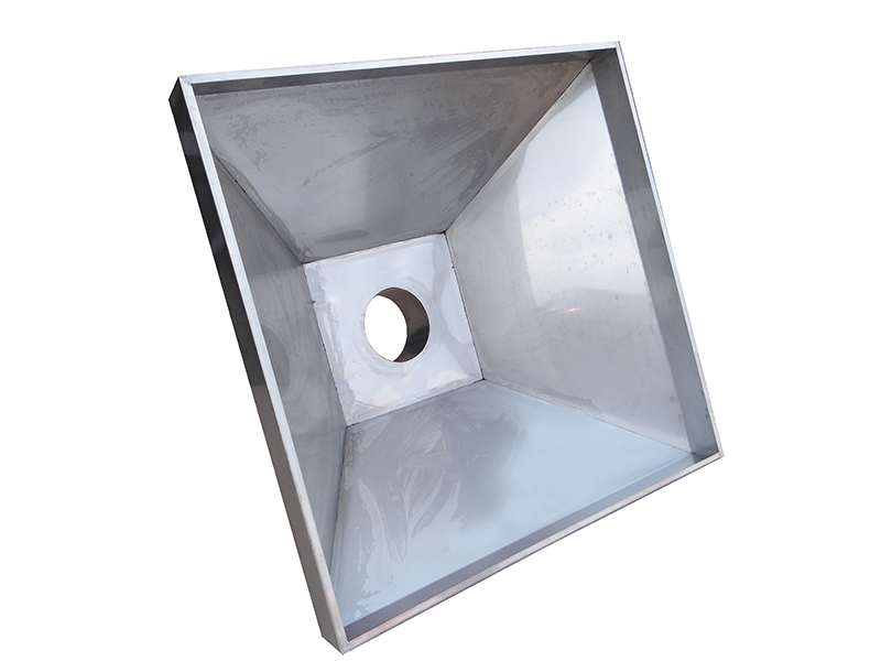 Вытяжные зонты были изготовлены по специальному проекту из высококачественной нержавеющей стали AISI 316L толщиной 1,5 мм. Три островных вытяжных зонта с габаритными размерами: 200х200 мм (верхнее сечение) /1000х1000 мм (нижнее сечение), высота Н = 600 мм, с врезкой под воздуховод Ф200 мм, со специальными приваренными креплениями для удобства монтажа.