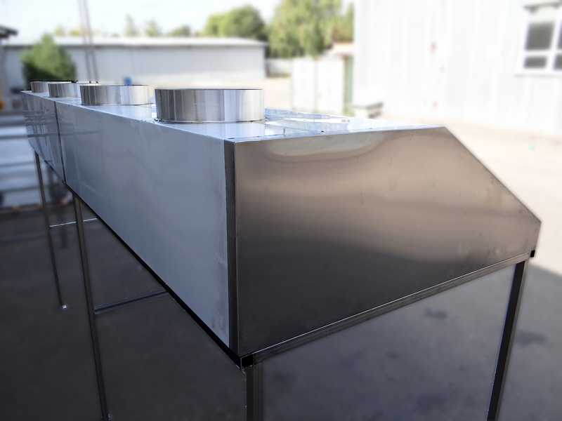 - Изготовление пристенных вытяжных зонтов ТИП 2 длиной до 2,5 м в количестве 18 шт, из нержавеющей стали AISI 430х1,0 мм с жироулавливающими фильтрами и врезками.
