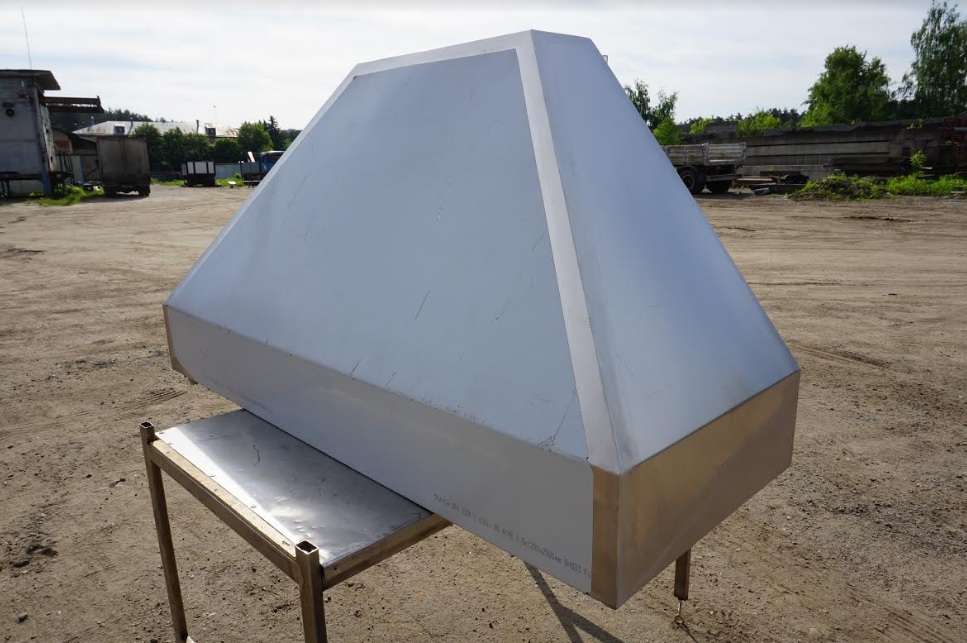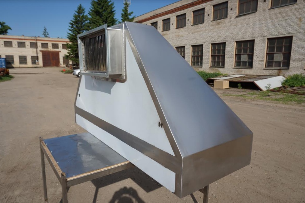 Процесс согласования договора проходил очень медленно, но в итоге договор был заключен и произведена оплата за изготовления индивидуального островного вытяжного зонта с гидрозатвором ТИП 4 600х200 мм (верхнее сечение) / 600х1600 мм (нижнее сечение), высотой 850 мм и присоединительной врезкой 500х270 мм. При изготовлении данного вытяжного зонта инженерам на производстве пришлось решать сразу несколько неординарных задач: обеспечить герметичность конструкции, отрегулировать угол наклона фильтров, минимизировать вынос влаги в канал.