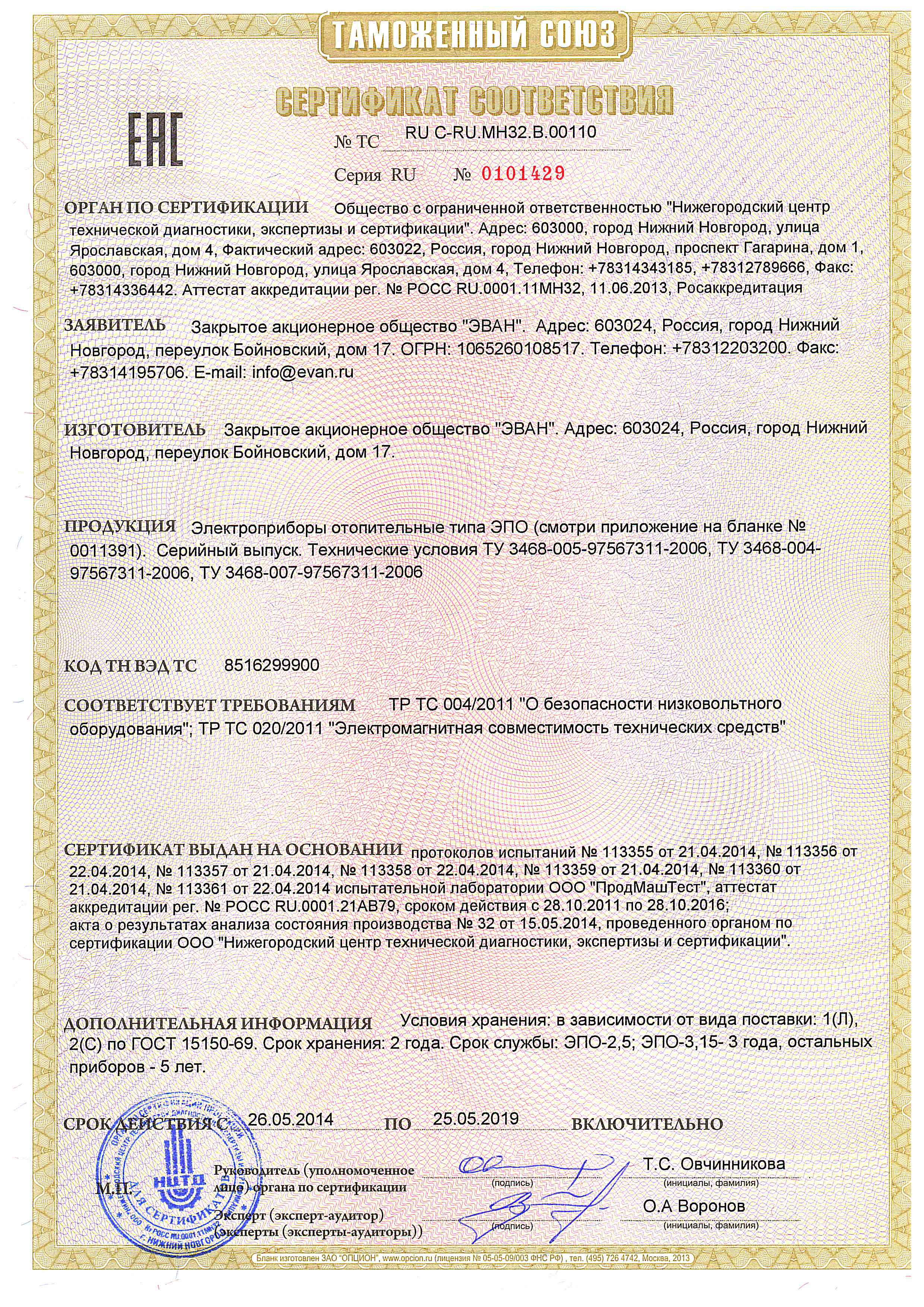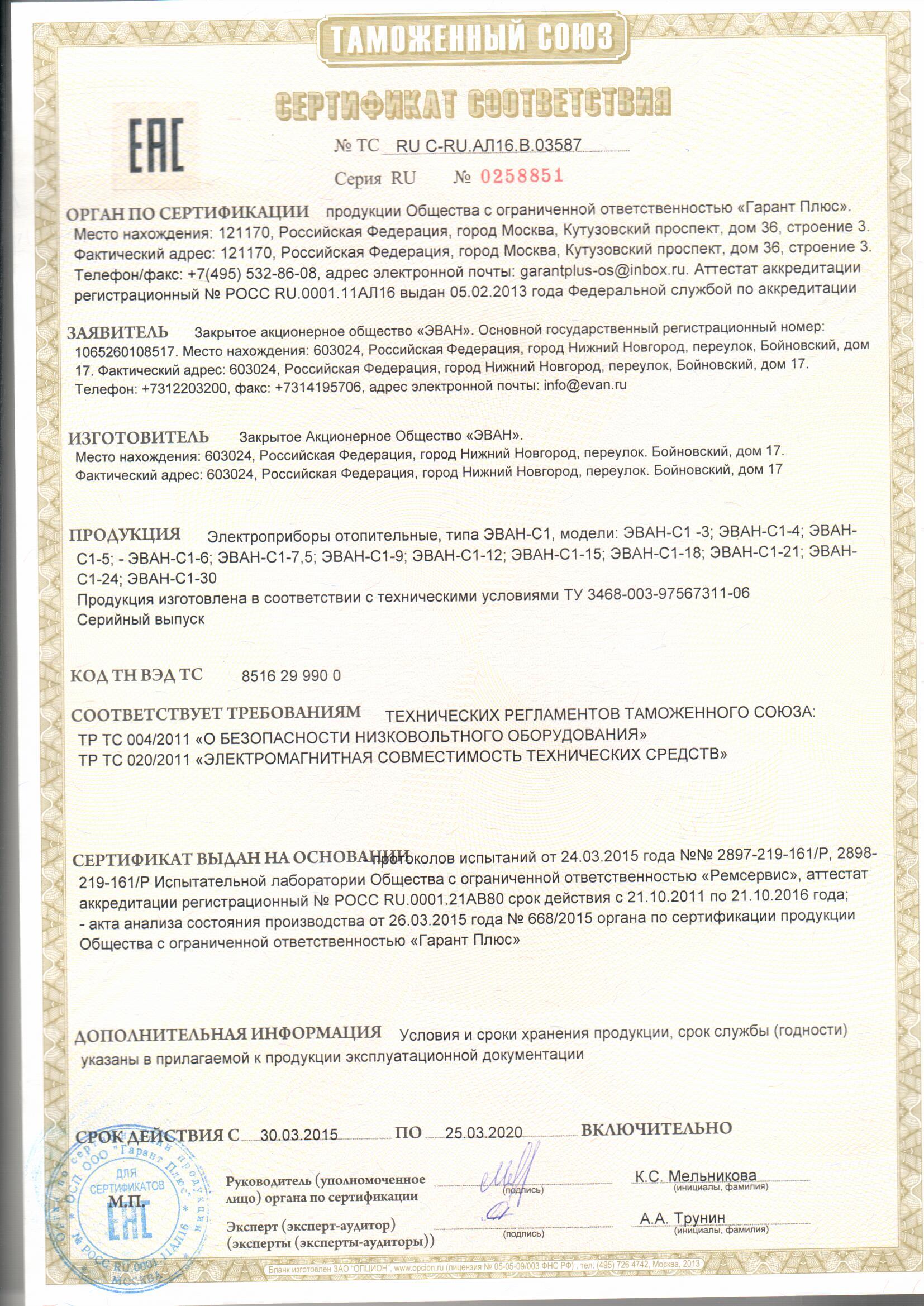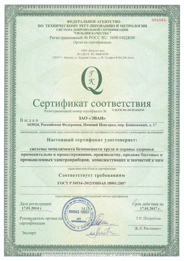 Лицензии и сертификаты компании Эван