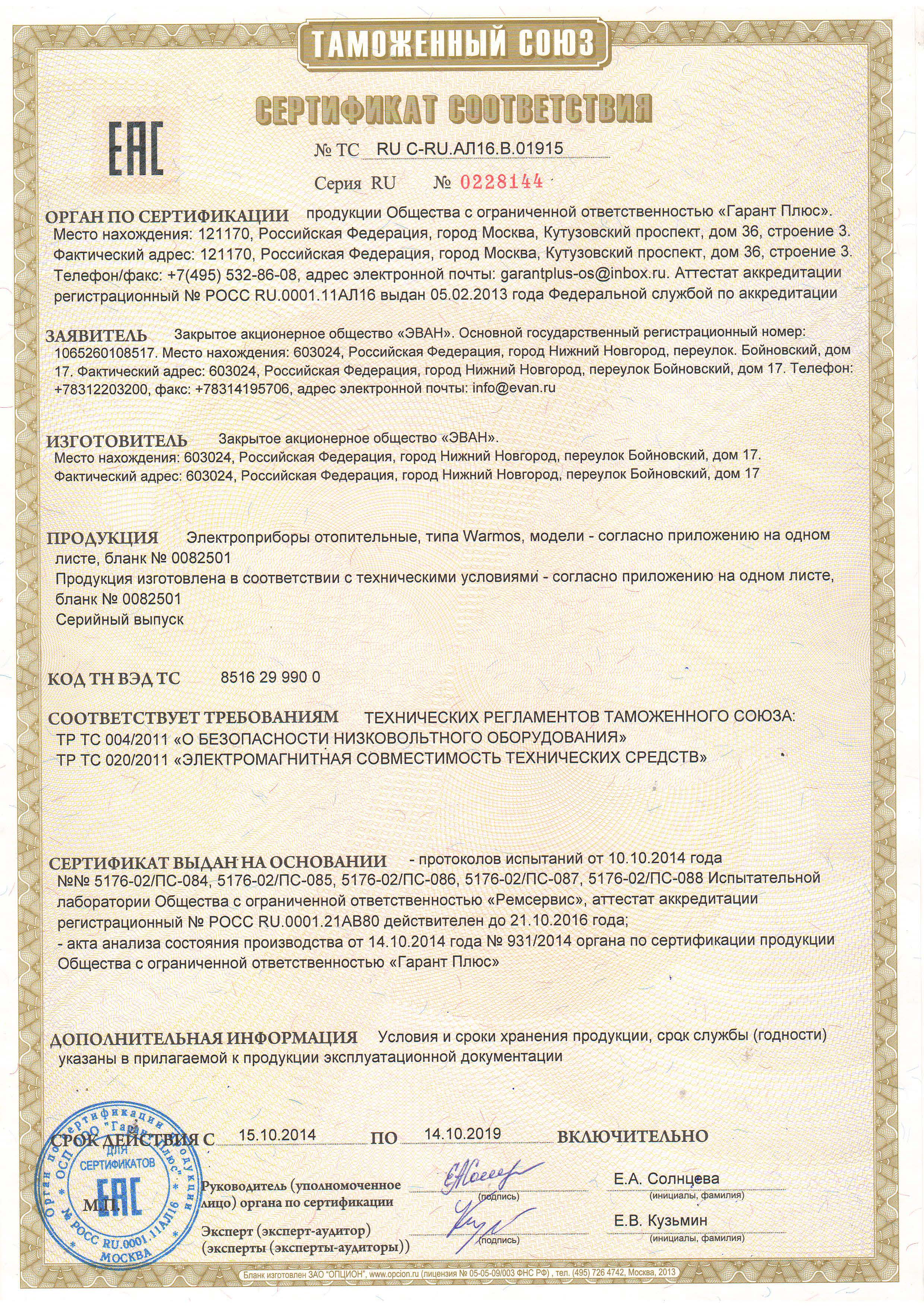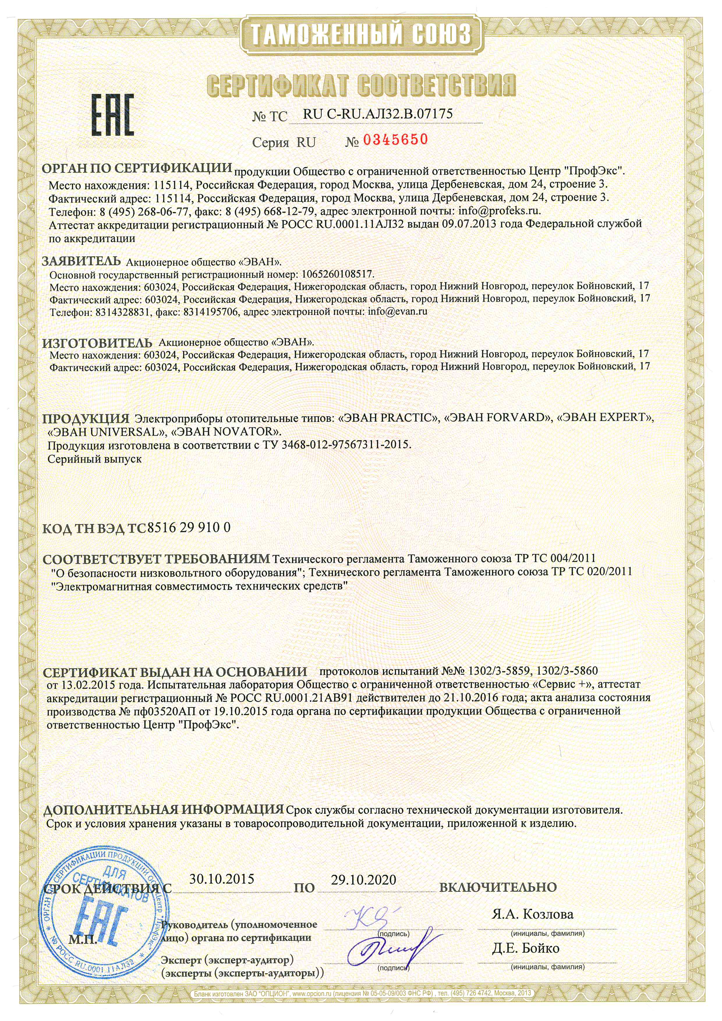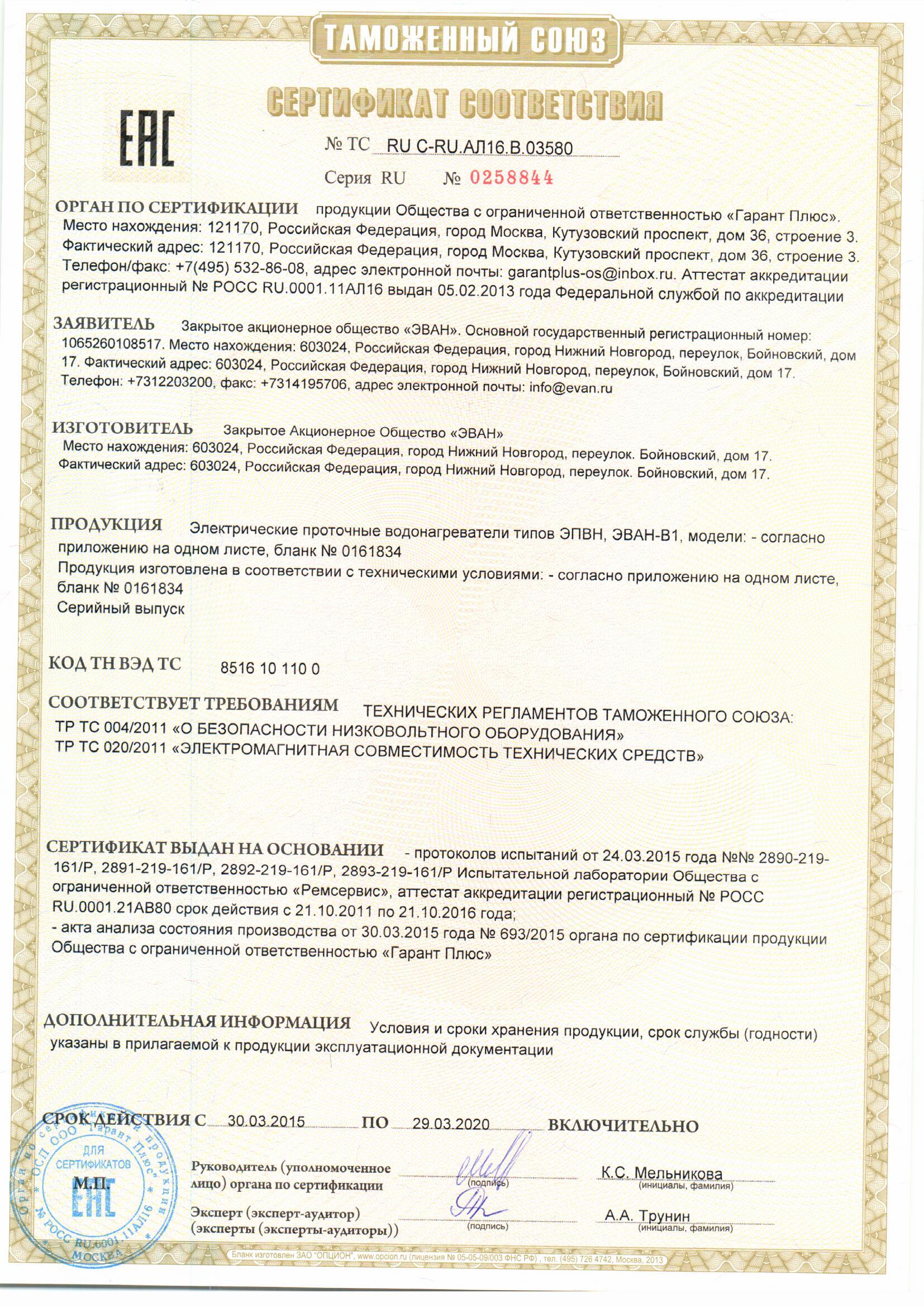 Лицензии и сертификаты компании Эван