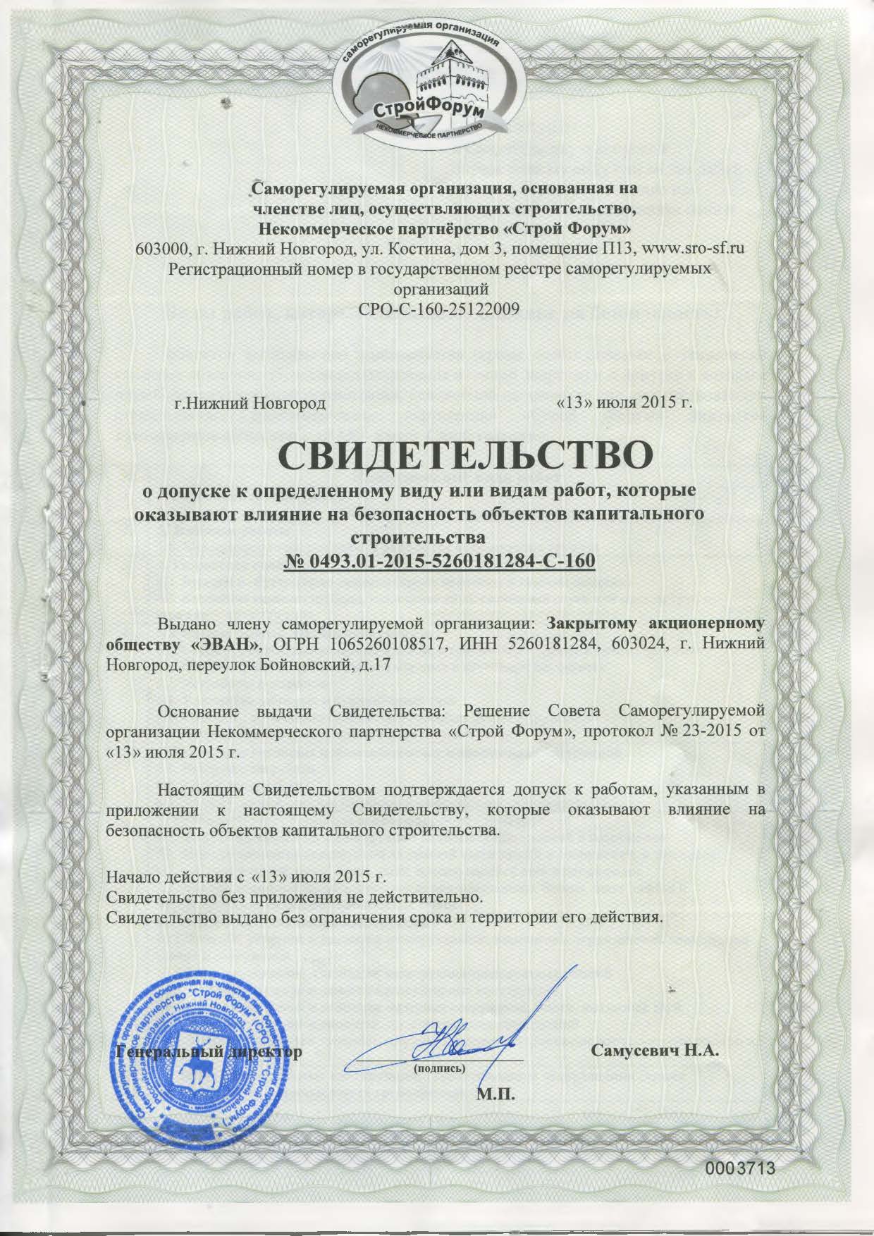 - Свидетельство о допуске к определенному виду или видам работ, которые оказывают влияние на безопасность объектов капитального строительства, страница 1