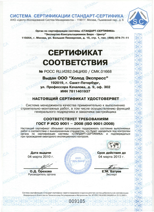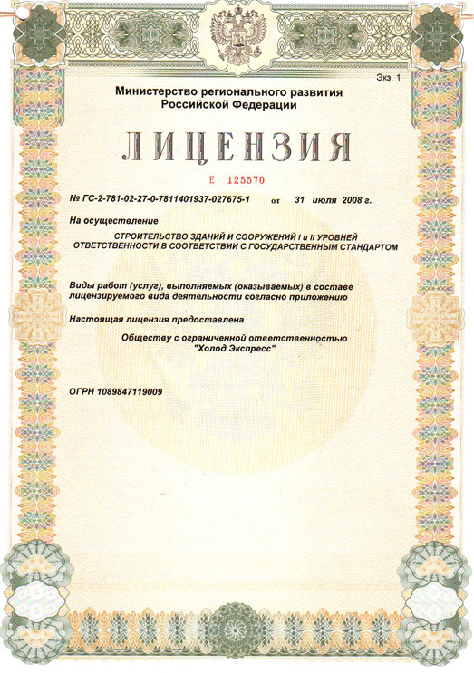 Лицензии и сертификаты компании Холод Экспресс, Группа компаний