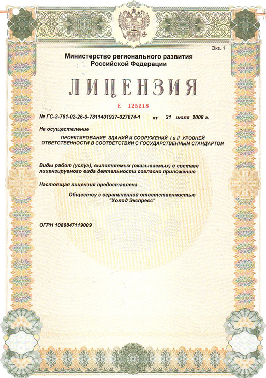 Лицензия на осуществление проектирования зданий и сооружений I и II уровней ответственности в соответствии с государственным стандартом