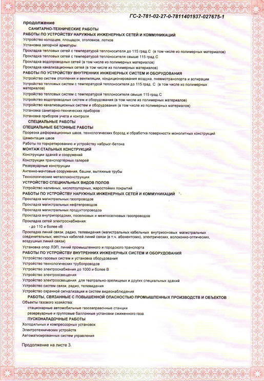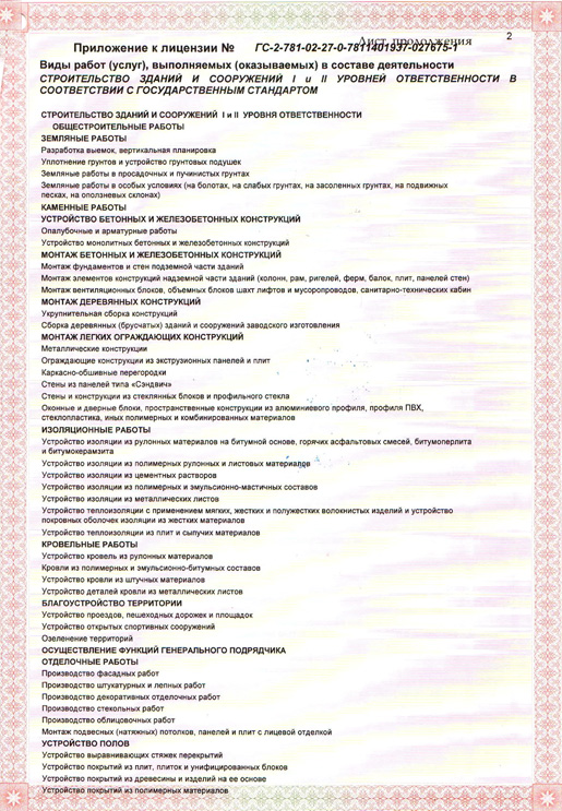 Лицензия на осуществление строительство зданий и сооружений I и II уровней ответственности в соответствии с государственным стандартом (стр.2)