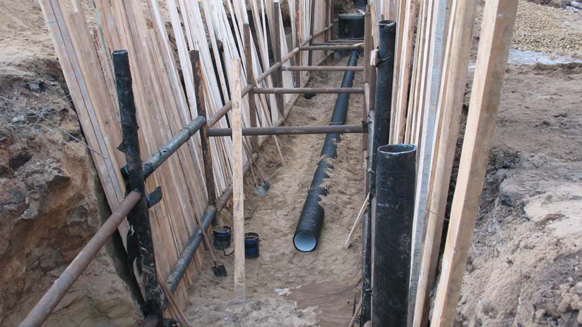• укладка трубопроводов канализационных безнапорных и напорных;