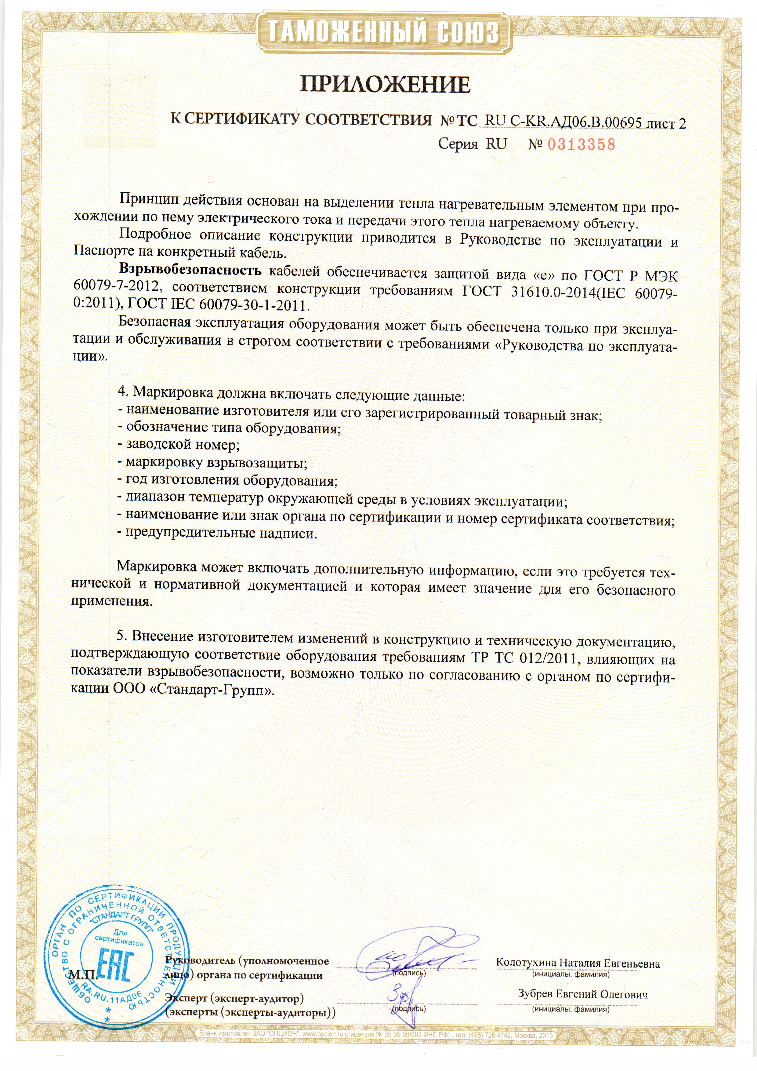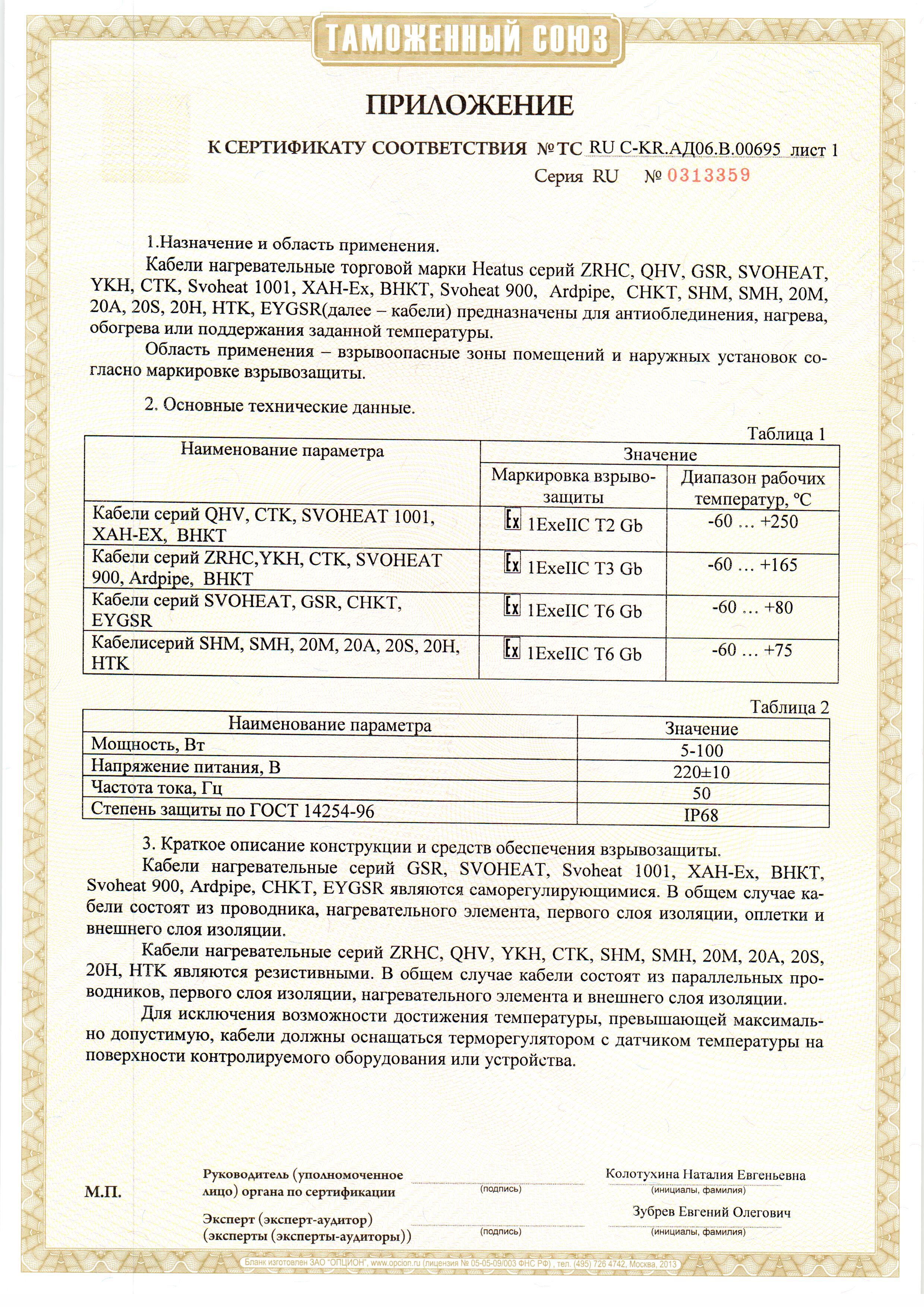 Сертификат соответствия на кабели нагревательные Heatus, страница 2