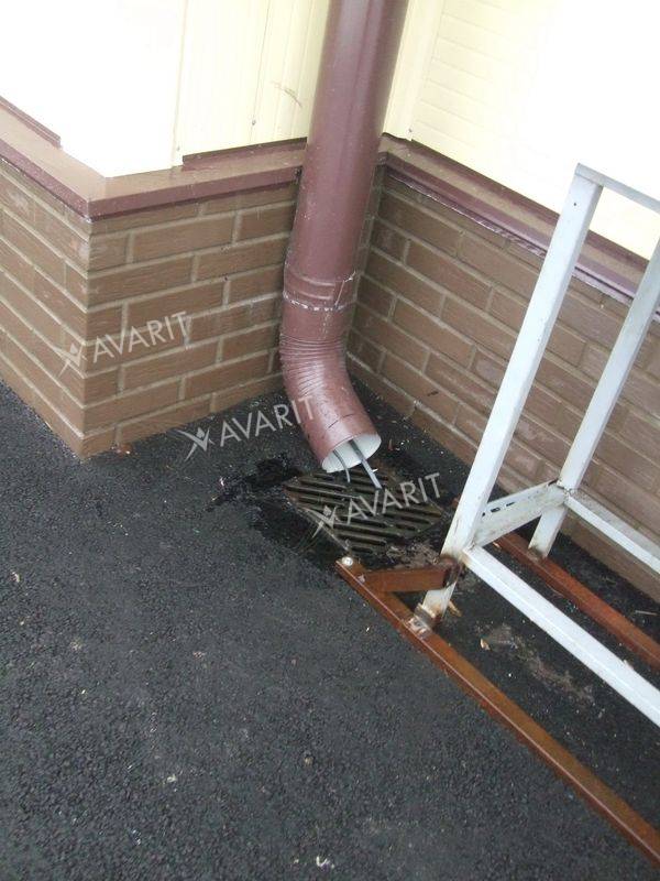 Устранить образование наледи наледи на желобах. Обеспечить сток талой воды.