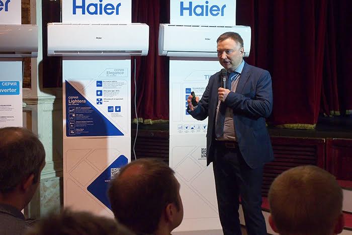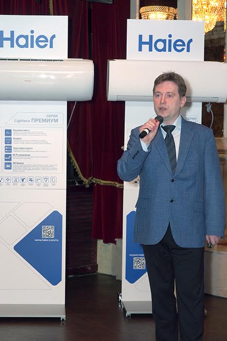С кратким обзором по истории компании Haier, ее достижений на российском рынке за последние годы, в частности, об открытии завода холодильников Haier в г. Набережные Челны в 2016 г. и о новинках бытовой линейки кондиционеров рассказал ведущий специалист Представительства HAIER Дмитрий Коробов.
