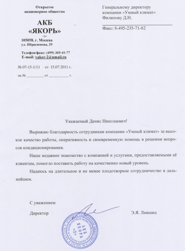 Отзыв заказчика