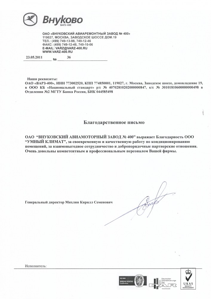 Отзыв заказчика