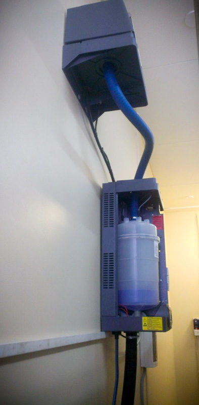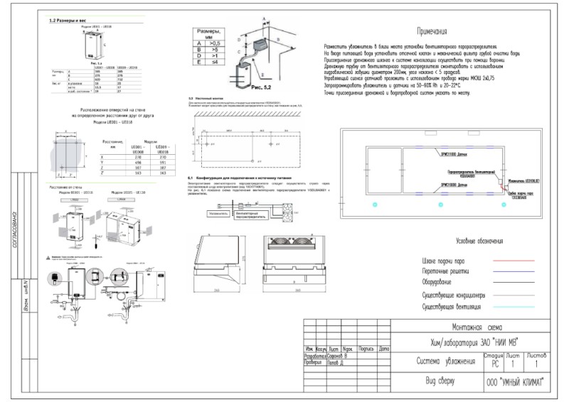 В химической лаборатории ЗАО «НИИ МВ» нашей компанией установлен увлажнитель воздуха Carel UE010XL0E1. Увлажнитель размещен вблизи места установки вентиляторного парораспределителя. На входе питающей воды установлен отсечной клапан и фильтр грубой очистки воды.