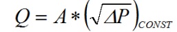 Благодаря передаче динамическому /регулирующему клапану функции стабилизации давления, формула для определения расхода будет определяться следующей зависимостью