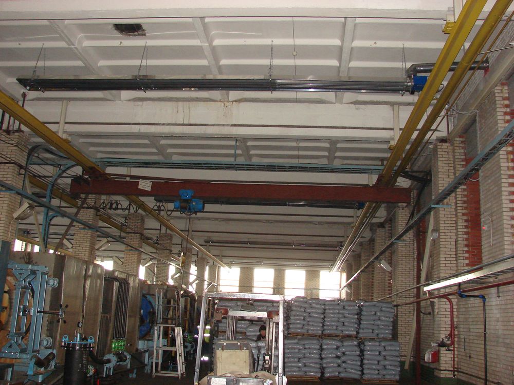 Проектом предусмотрена установка четырех однотрубных систем EUCERK суммарной мощностью 864 кВт. Газогорелочные блоки расположены за пределами склада на наружных стенах.
