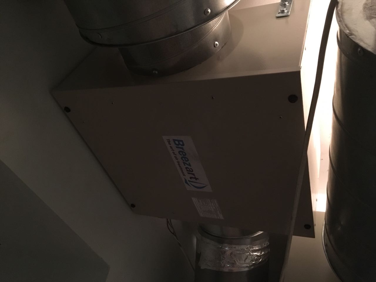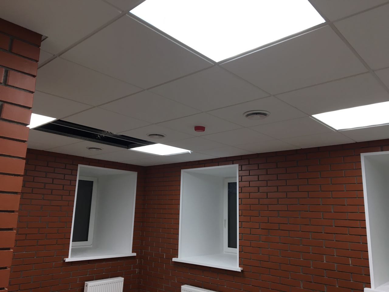 Для обеспечения необходимой кратности воздухообмена предусмотрены системы приточной и вытяжной вентиляции Breezart, производительностью 700 куб. м. Для поддержания оптимальной температуры воздуха в зимний период установка снабжена электрическим нагревателем. Воздуховоды системы вентиляции будут закрыты декоративным потолком по окончании отделочных работ.