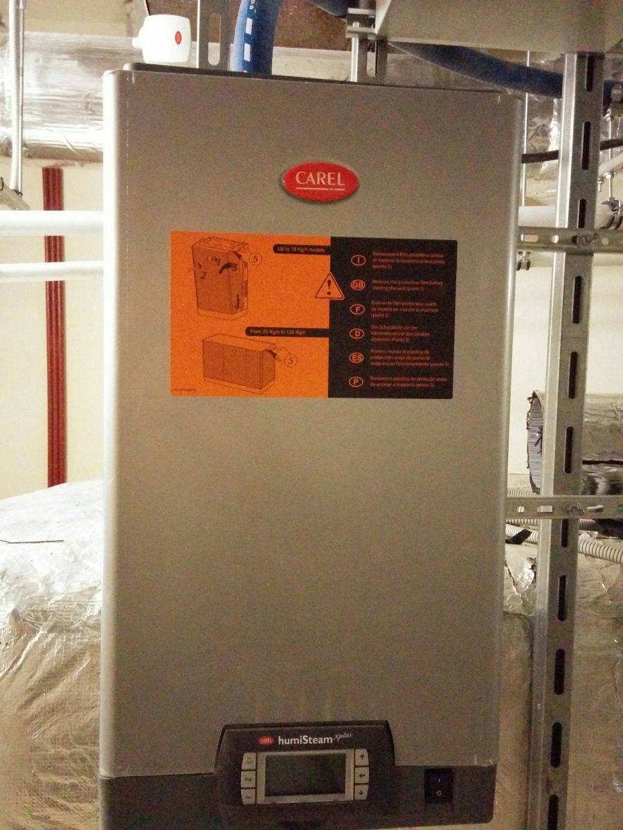 Для поддержания необходимого уровня влажности в помещении серверной, нашей компанией был установлен промышленный увлажнитель воздуха Carel.