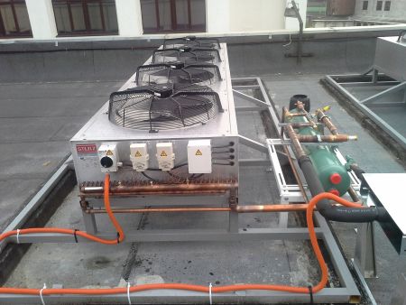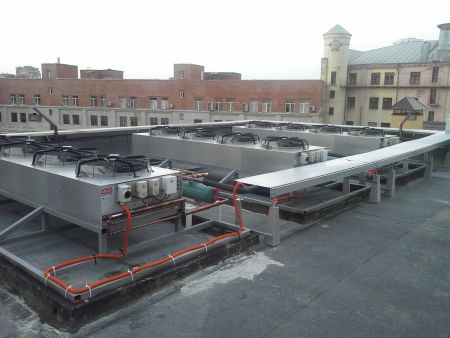 Воздушные конденсаторы расположены на кровле здания.