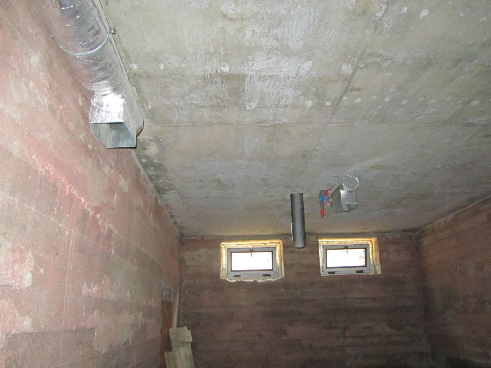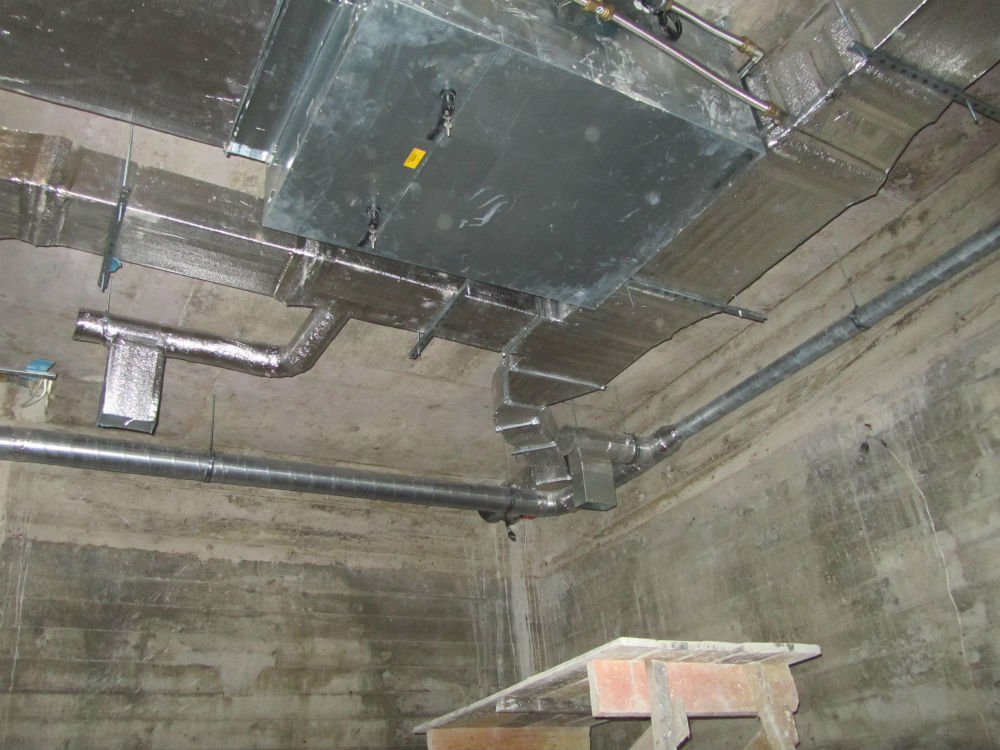 Вентиляционные каналы расположены в подпотолочном пространстве, для дальнейшего скрытия их под гипсокартоновые конструкции.