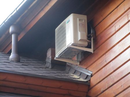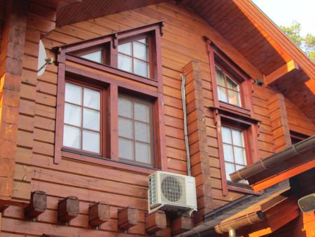 Расположение внешних блоков максимально скрыто на заднем фасаде дома.