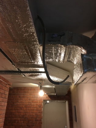 Приточный воздуховод теплоизолирован для уменьшения тепловых потерь.