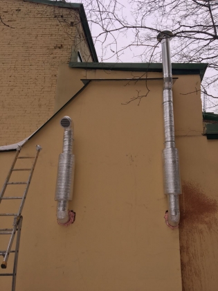 Забор и выброс воздуха производится через шумоизолированные воздуховоды, расположенные на фасаде здания со стороны двора.
