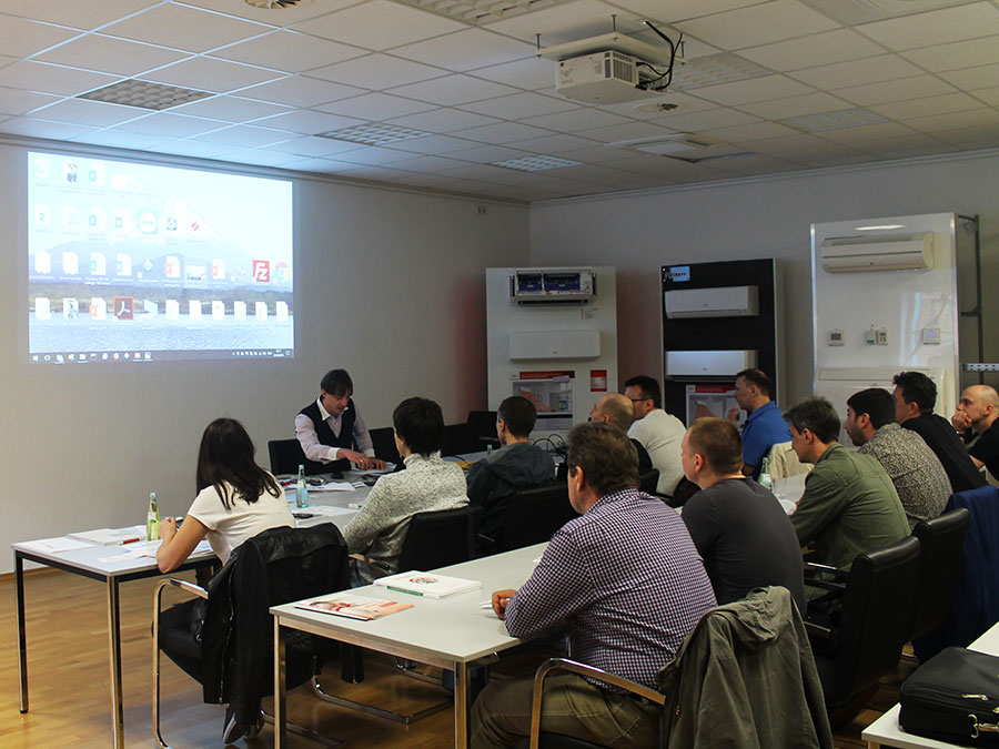 Участникам тренинга продемонстрировали широкие возможности мультизональных систем GENERAL Airstage J-IIIL, V-III и VR-II, особенности холодильного контура и линий управления, дали возможность получить навыки работы с диагностической программой ServiceTool и практический опыт настройки системы, проводимой при первом запуске.