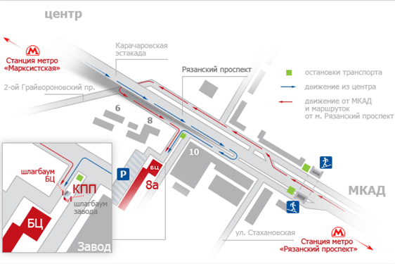 либо от станции метро «Рязанский проспект» маршрутным такси №279, 411 до ост. «Бизнес-центр».