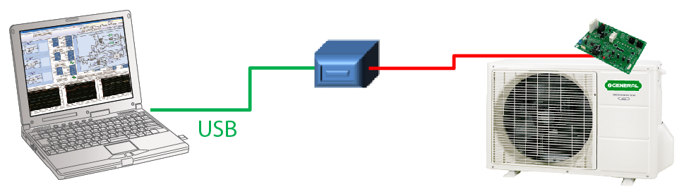 Корпорация Fujitsu General Ltd. представила на рынке новый продукт для диагностики сплит-систем и мульти-сплит-систем GENERAL. Инструмент представляет собой комплект из адаптера, соединяющего наружный блок с компьютером, и программу для ПК. С их помощью специалист, проводящий диагностику оборудования, в режиме реального времени может видеть параметры работы компрессора, мотора вентилятора, EEV, показания датчиков, а также журнал ошибок. В процессе тестирования возможна запись рабочего журнала с выдачей отчета.