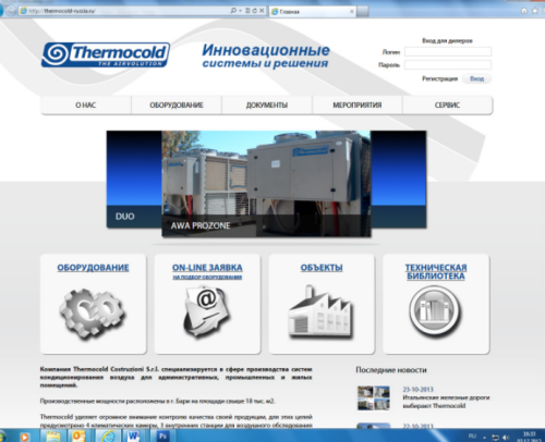 Группа компаний «АЯК» - официальный дистрибьютор промышленных климатических систем Thermocold Costruzioni S.r.l., сообщает о начале работы русскоязычного сайта бренда (www.thermocold-russia.ru). Сайт имеет интуитивно понятный интерфейс, удобную навигацию, лаконичный и простой дизайн.