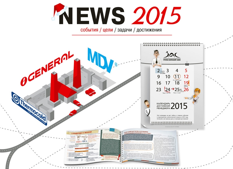 В комплекте с ежедневником уже выпущен стилизованный календарь, в котором отмечены самые важные, знаковые и актуальные события и мероприятия климатической отрасли сезона-2015, благодаря чему менеджер всегда будет в курсе происходящего.