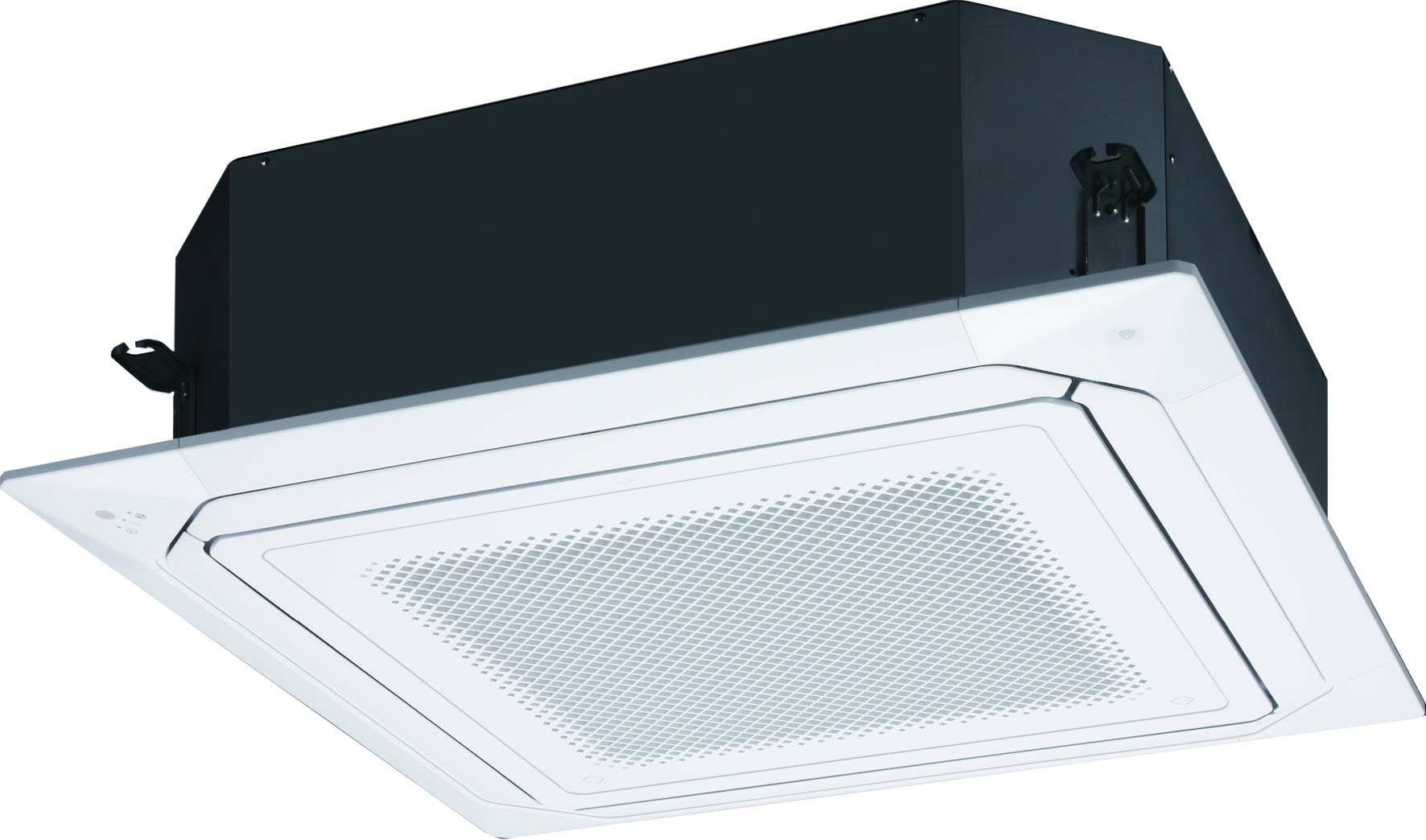 Новые инверторные сплит-системы кассетного типа холодопроизводительностью от 2,5 до 14 кВт обладают новой декоративной панелью, имеющей объемное круговое воздухораспределение. Каждое жалюзи декоративной панели может регулироваться индивидуально с сенсорного проводного пульта, который идет в стандартной комплектации.