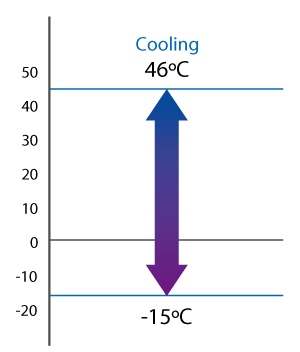 До -15 °С снижена граница рабочих температур в режиме охлаждения, при этом в настоящее время усовершенствованные сплит-системы тестируются для работы при более низких температурах.