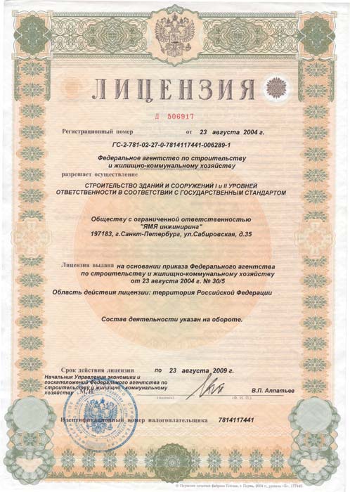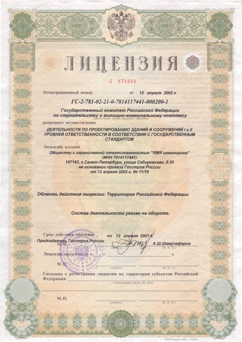Лицензии и сертификаты компании ЯМЯ инжиниринг