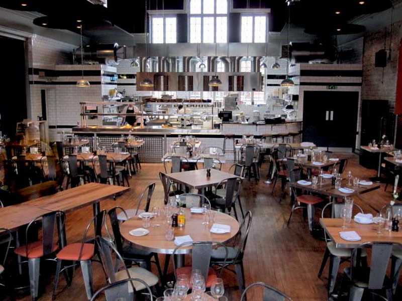 Больше всего, что может привлечь особое внимание посетителей, это дизайн открытой кухни с кухонным зонтом компании Jeven островного типа. Зонт установлен на потолке и своим огромный размером несомненно притягивает гостей ресторана.