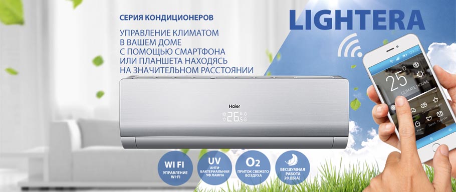 Haier LIGHTERA – серия бытовых кондиционеров. Встроенная функция управление климатом по Wi-Fi позволяет регулировать работу кондиционера в любой точке Земного шара.