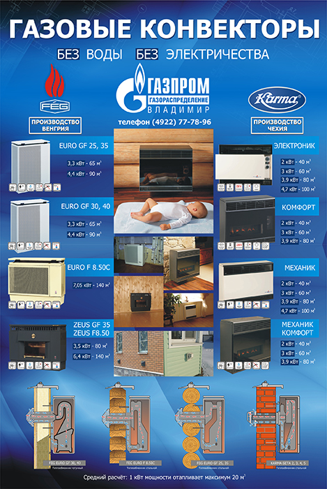 Компания «КФ Холдинг» – Официальное представительство заводов KARMA (Чехия) и FEG (Венгрия) в России, разработала для АО «Газпром газораспределение Владимир» информационные поясняющие плакаты с полным модельным рядом и принципом работы разных форм теплообменников, газовых конвекторов заводов KARMA (Чехия) и FEG (Венгрия).